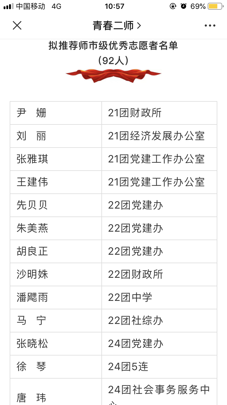 去年志愿服务西部的我校优秀学生徐琴同学,因表现突出成绩优异被评为团场“最美志愿者”、“优秀共青团干部”,并且在志愿者年度考核中荣获师市级“优秀志愿者”荣誉称号。