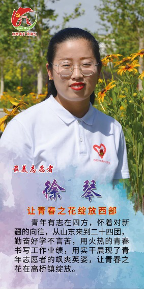 “让青春之花绽放西部”——是徐琴的座右铭。她青年有志,不远万里从山海院去到西部成为了一名志愿者,她乐于助人、积极主动、勤奋好学、不怕苦、不怕难,用炙热青春书写工作上的战绩,用实干的能力展现了青年志愿者多才多能,英姿飒爽。