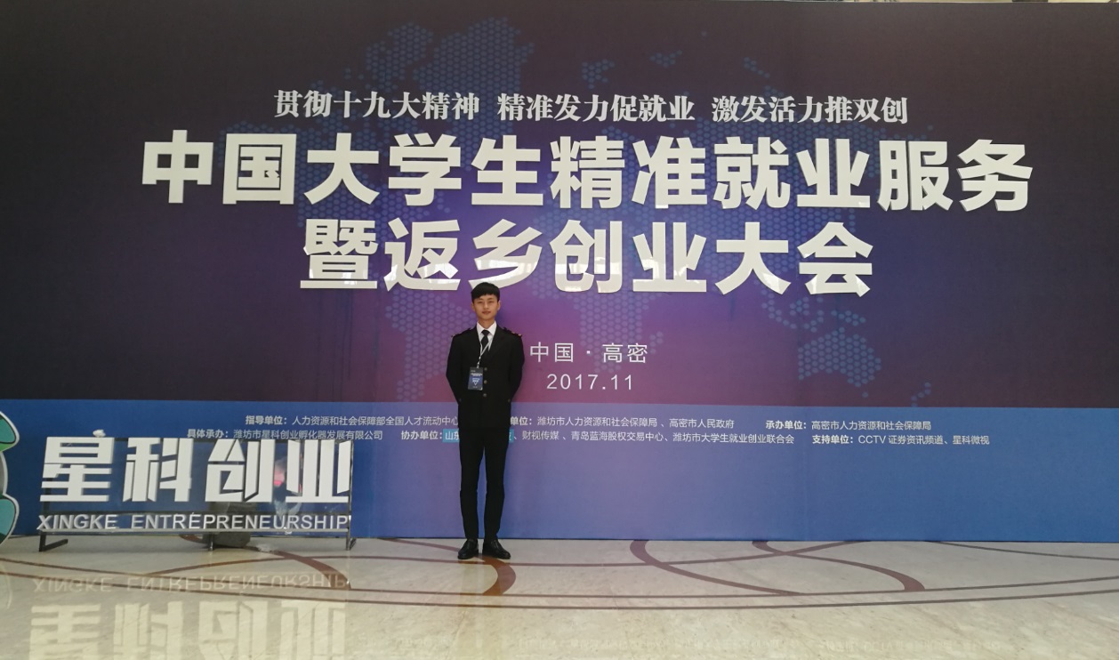 11月2日,由人社部全国人才流动中心指导,潍坊市人社局、高密市人民政府共同主办的“中国大学生精准就业服务暨返乡创业大会”在高密市召开,历时5个月的潍坊市大学生创新创业先进集体、先进个人评选活动和大学生创新创业大赛落下帷幕。这次大会上,港航与电商学院学生王延贺被潍坊市人民政府评为潍坊市优秀大学生创业者。港电学院的《电商与实体互动中心的创业计划》(路演)与《大学生情侣服务中心》(王延贺)分别获滨海赛区二、三等奖。