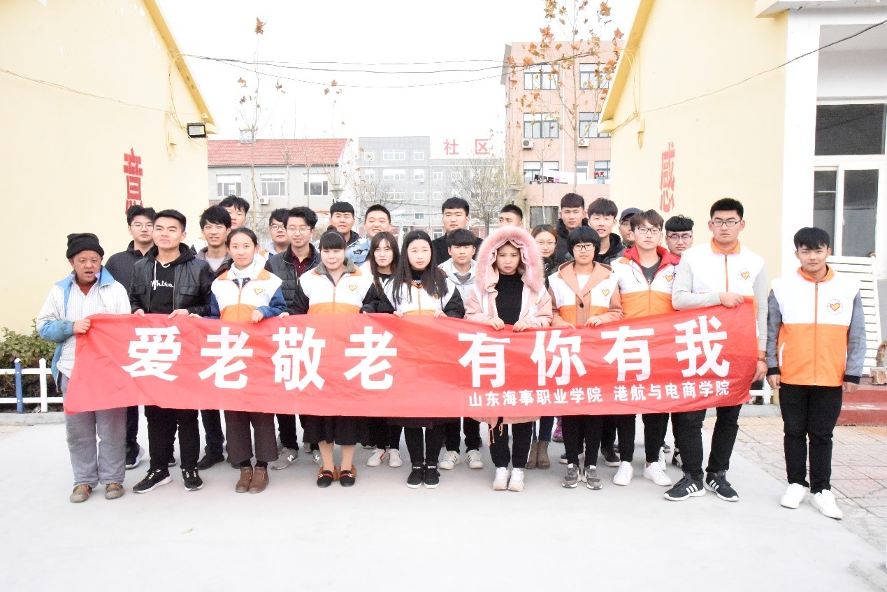为了培养当代大学生的社会实践能力和社会公德意识,弘扬中华民族敬老爱老的传统美德,为他们晚年寂寞的精神世界献上一份关爱,山东海事职业学院港航与电商学院于2017年11月26日举行了敬老院献爱心的活动。为敬老院的老人们带去心灵上的慰藉,让他们感受到青少年的朝气和社会的温暖。