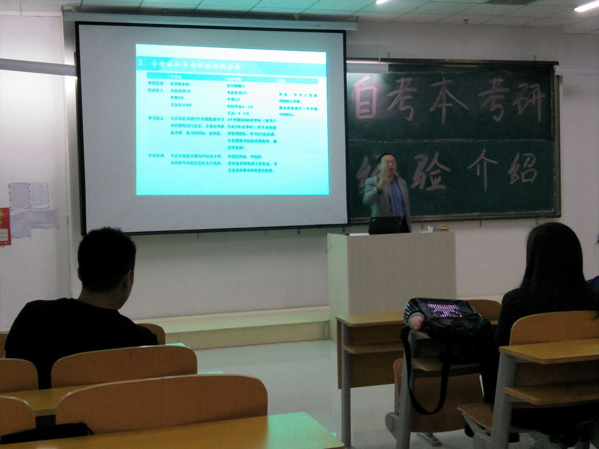 为了提升同学们的学历,适应社会的发展,能够有更好的发展前途,港航管理学院于4月11日晚在4212教室开展了一次关于自考本、考研的介绍的讲座,老师为16级的学生们详细的介绍了关于自考本的优势,让同学们更加了解自己的选择。