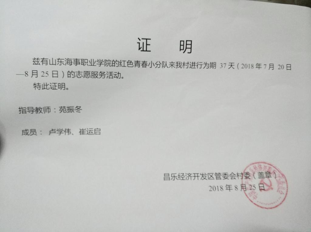 在2018年的夏天,经过了半个月的筹备报名,很幸运自己代表山东海事职业学院港航管理学院参加潍坊市暑期“三下乡”的活动,来到了潍坊市昌乐市经济开发区管委会进行党建和社区服务的活动,感谢领导们信任和支持,由我担任本支红色青春小分队的队长,我们在7月20日清晨集合在潍坊市客运中心,由我传达了指导教师苑振冬老师对于本次实践活动的中心思想和方向、目标,传承中华优良传统,弘扬红色精神为主题和中心开展社会实践活动,半小时的车程我们来到了美丽的昌乐市经济开发区管委会。