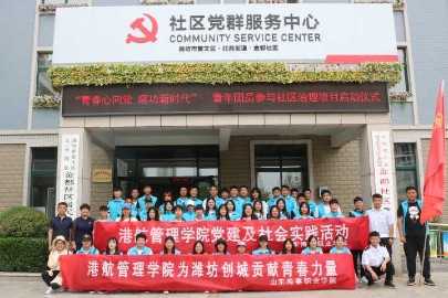 2019年5月18日,港航管理学院党总支深入贯彻落实习总书记《在纪念五四运动100周年大会上的讲话》精神,在潍坊市奎文区北苑街道金都社区隆重举行“党建和思政教育实践点、大学生社会实践基地”的成立暨揭牌仪式,奎文区北苑街道党工委组织委员、总工会主席田林,北苑街道办事处副主任张鹏,北苑街道金都社区党委书记王致娟,港航管理学院党总支书记、院长陈铭志,院长助理门瑞峰出席活动,港航管理学院50余名入党积极分子及学生干部参加活动。