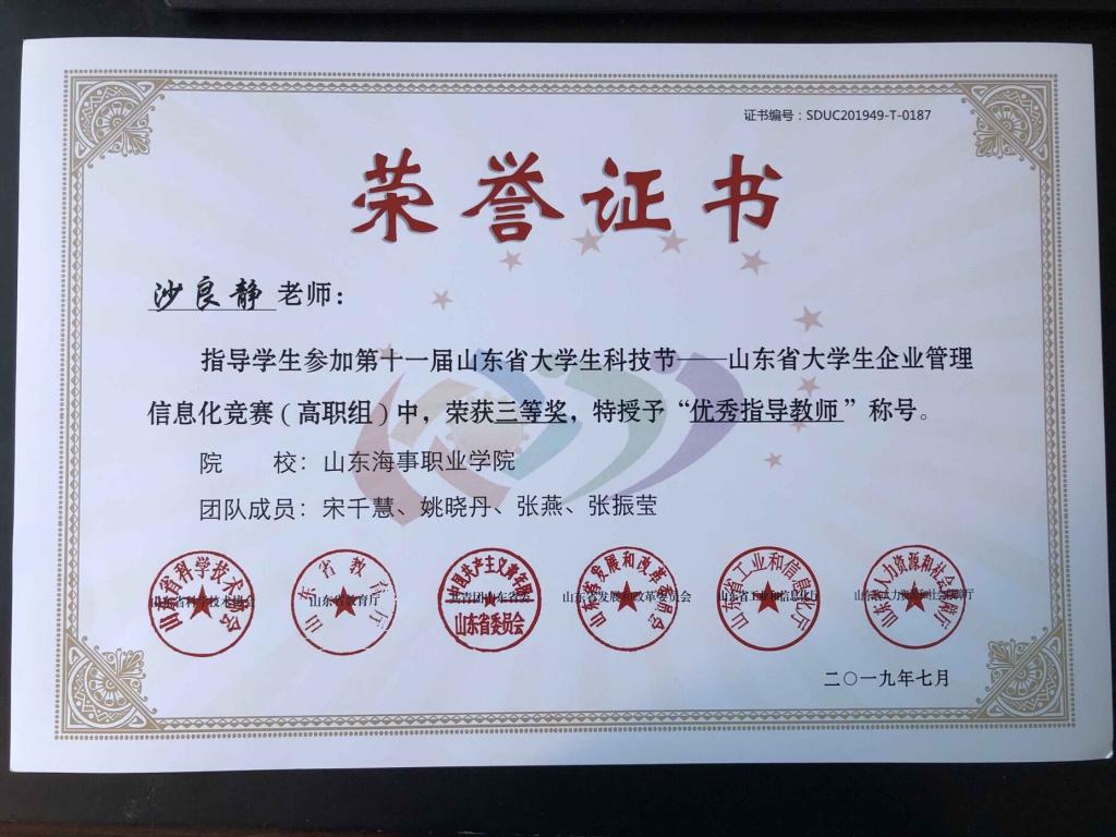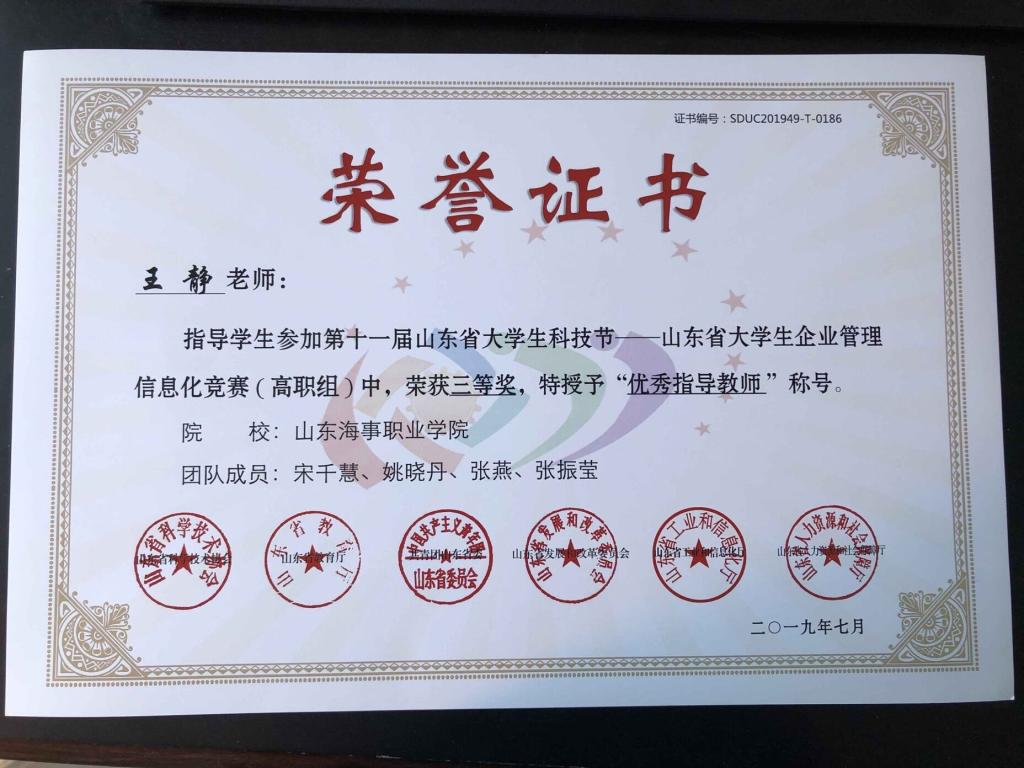 港航管理学院在山东省大学生企业管理信息化竞赛(高职组)荣获三等奖
