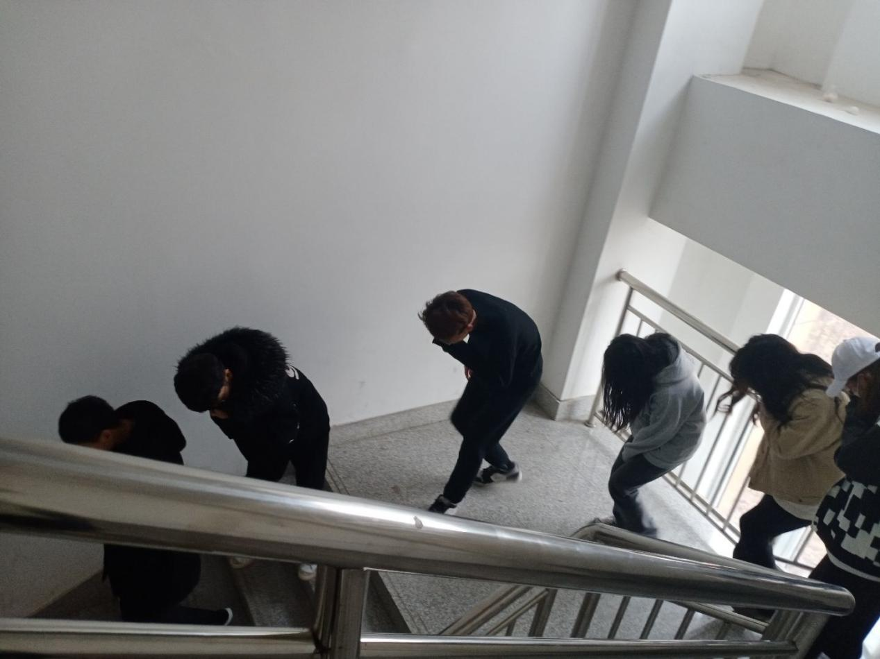 上午10:20辅导员王浩老师发起火情预警,向教室投放烟弹,逼真模拟着火场景,并吹响了火情警示哨音。面对突发情况正在上课的老师学生并没有惊慌失措,课堂上课老师立即组织学生有序撤离,待同学们全部撤离之后老师最后撤离,同学们低头弯腰掩住口鼻沿着楼梯一侧快速赶往集合地点集合。任课老师清点班级人数并向都炜刚老师汇报应到实到人数,随后学院陈铭志院长给全体师生做了消防安全知识培训。