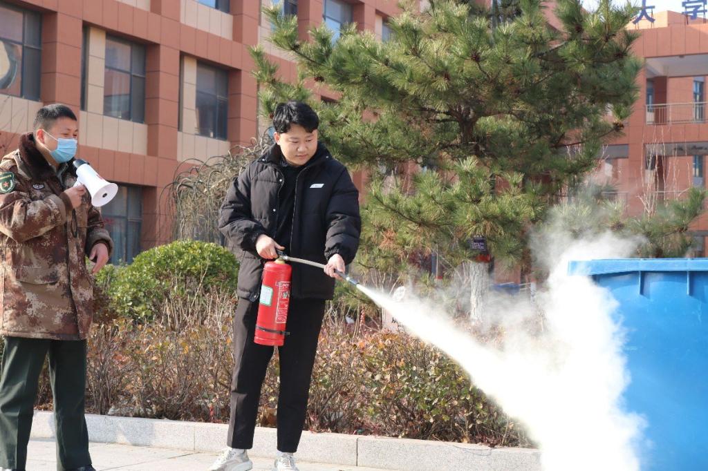本次消防演练也得到了学校安保处的大力支持,活动现场安保处孟凡明处长向我们详细讲解了火灾逃生技巧,并现场教学手把手教同学们如何正确使用灭火器。