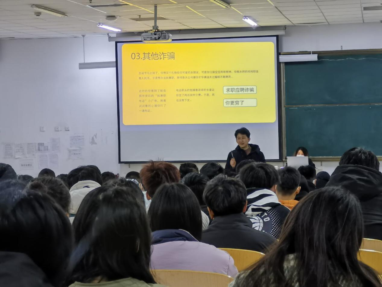学院辅导员深入班级利用主题班会,深入浅出的向学生讲解了什么是诈骗?有哪些形式?应该怎么预防?通过实际案例展示让学生意识到诈骗就在我们身边,要时刻保持警惕,并讲述了遇到相关问题的处理方法,避免财产不必要的损失;通过观看《预防电信诈骗公益短片》,更直观的向学生展示了电信诈骗的骗术和正确预防措施,认识到诈骗是可以识别并防范的;学生们还积极进行讨论,通过身边发生的真实案例为教材,向大家展示诈骗分子的惯用手段和识别技巧。