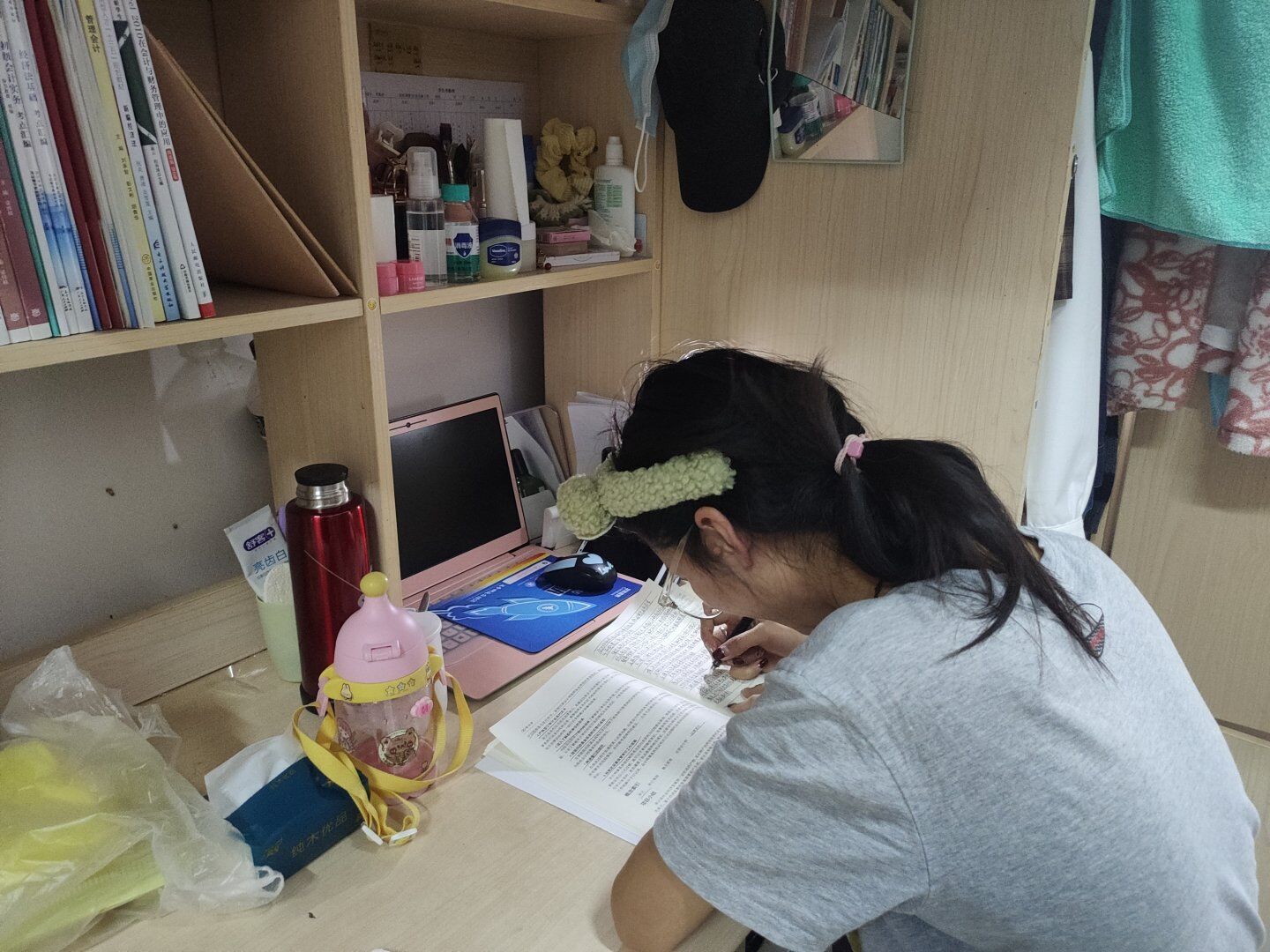 虽然大家不能坐在宽敞明亮的教室里上课,但是同学们学习热情并没有减退,也没有因此丧失对生活的热爱,反而以积极向上的心态去面对。同学们课间把对疫情消失的愿望绘画在纸张上,上课期间认认真真做好课堂笔记,宿舍学习氛围既舒适又充实,取得了良好的习效果。