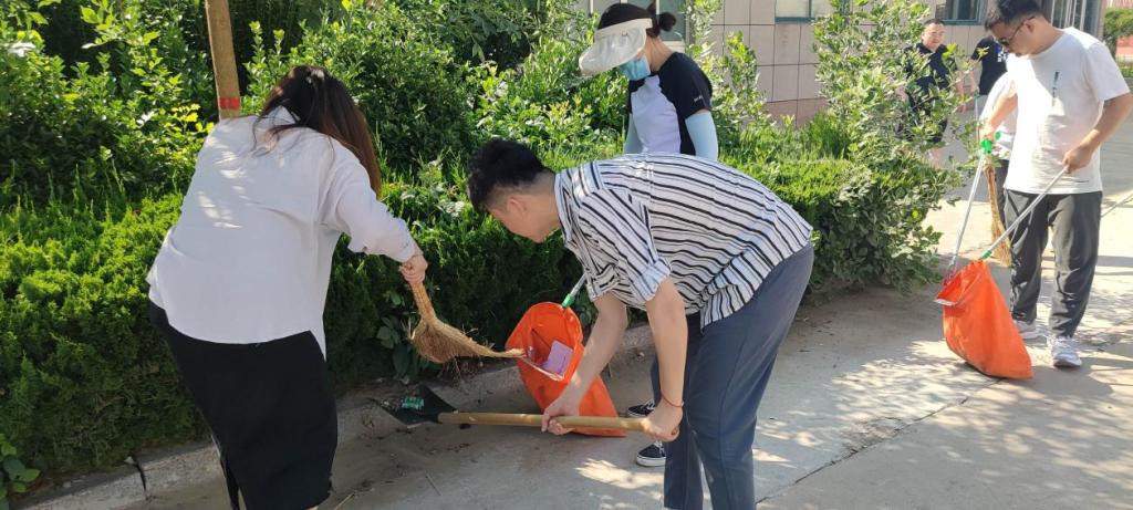 6.22日上午8点30分,港航管理学院全体党员老师在卫生区集合,开展“我是党员我带头”义务清扫校园活动。