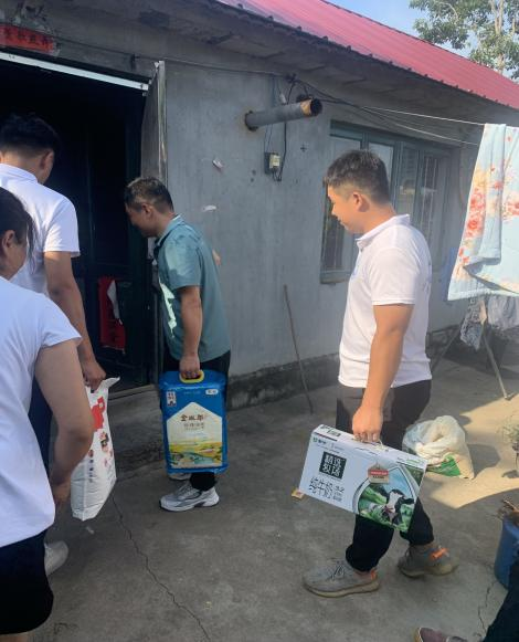 随后志愿者一行人在村干部带领之下,走访慰问了村里的老党员和困难群众,为每户送去了米、面、奶等慰问品。他们深农户