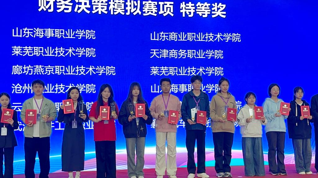 此次参赛的5支队伍一路从省赛冲进决赛,最终跟来自全国100多所高校的160支队伍同台竞技,本次比赛赛程安排紧张,比赛规则也有了很大变化,面对突如其来的情况参赛同学沉着应对及时改变策略调整方案,经过2天的紧张比赛最终越飞越高队(李瑞杰、牛祥宇、袁赫)和展翅高飞队(岳朝阳、安星如、郭新茹)分别斩获财务决策赛项特等奖;逐梦队(张文弟、王玉春、尹昌兴)荣获数字营销赛项特等奖;跟着党就队(王贻梅、李欣欣、吕强)荣获数字营销赛项一等奖;钮钴禄甄嬛屠龙队(吴晓琪、唐宝林、傅鹏里)荣获创业综合模拟赛项一等奖。