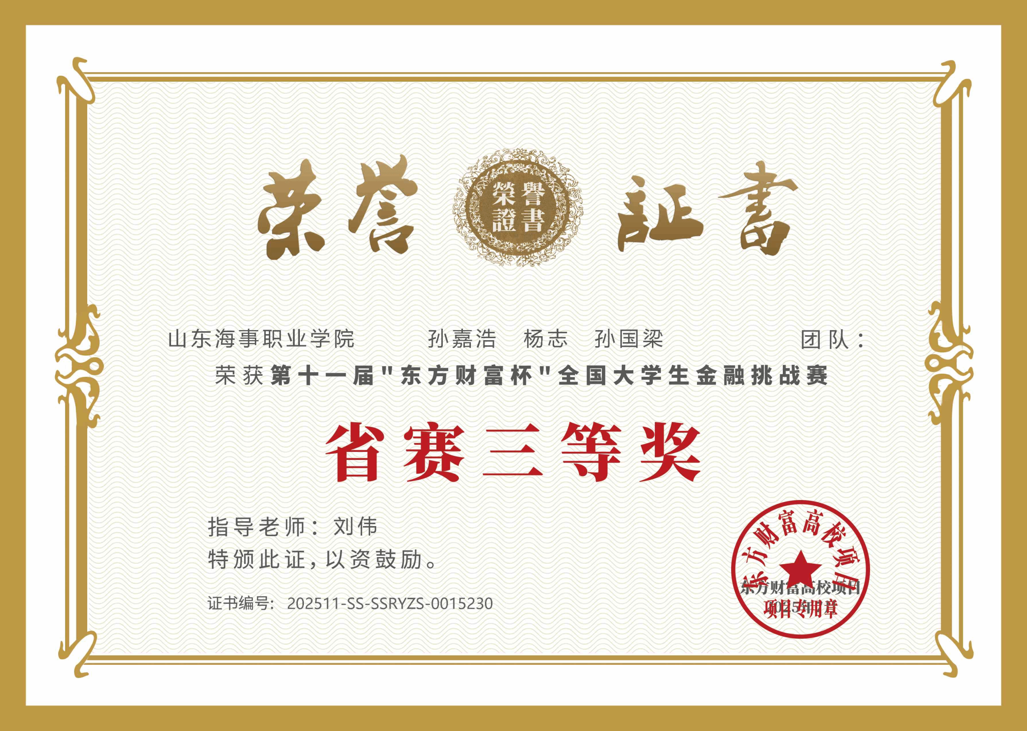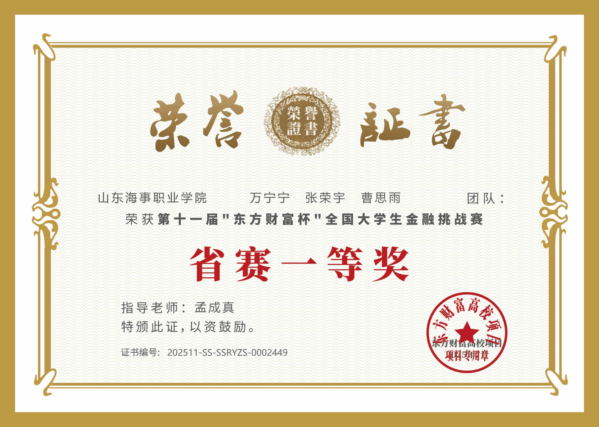 近日,第十一届“东方财富杯”山东省大学生金融挑战赛传来捷报,我校学生在老师的悉心指导下,凭借扎实的金融专业知识和出色的实践能力,积极备战,历经多轮激烈角逐,最终脱颖而出,斩获省一等奖1项、二等奖2项、三等奖6项,展现了我校学生在金融领域的潜力与风采。