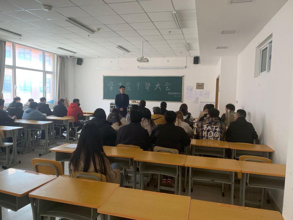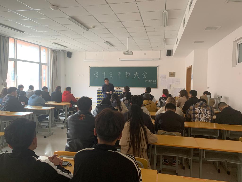 会议上,首先都炜刚老师总结了上一学期工作中的不足,吸取经验,再接再厉。都老师提到了“作为学生干部综合素质”问题,优异的学习成绩与卓越的综合能力是作为一名合格的学生干部的必要条件,学生干部应该学会提升自己在平时的工作中,提高自己的学习成绩以身作则带动班里同学,学会在对的时间里去做对的事情合理分配自己的时间。其次,会议中,刘伟老师叮嘱学生会干部做好本职工作,各部门相互配合,对即将开展的工作进行了详细的部署安排,力求做到每一个细节尽善尽美。